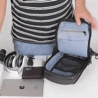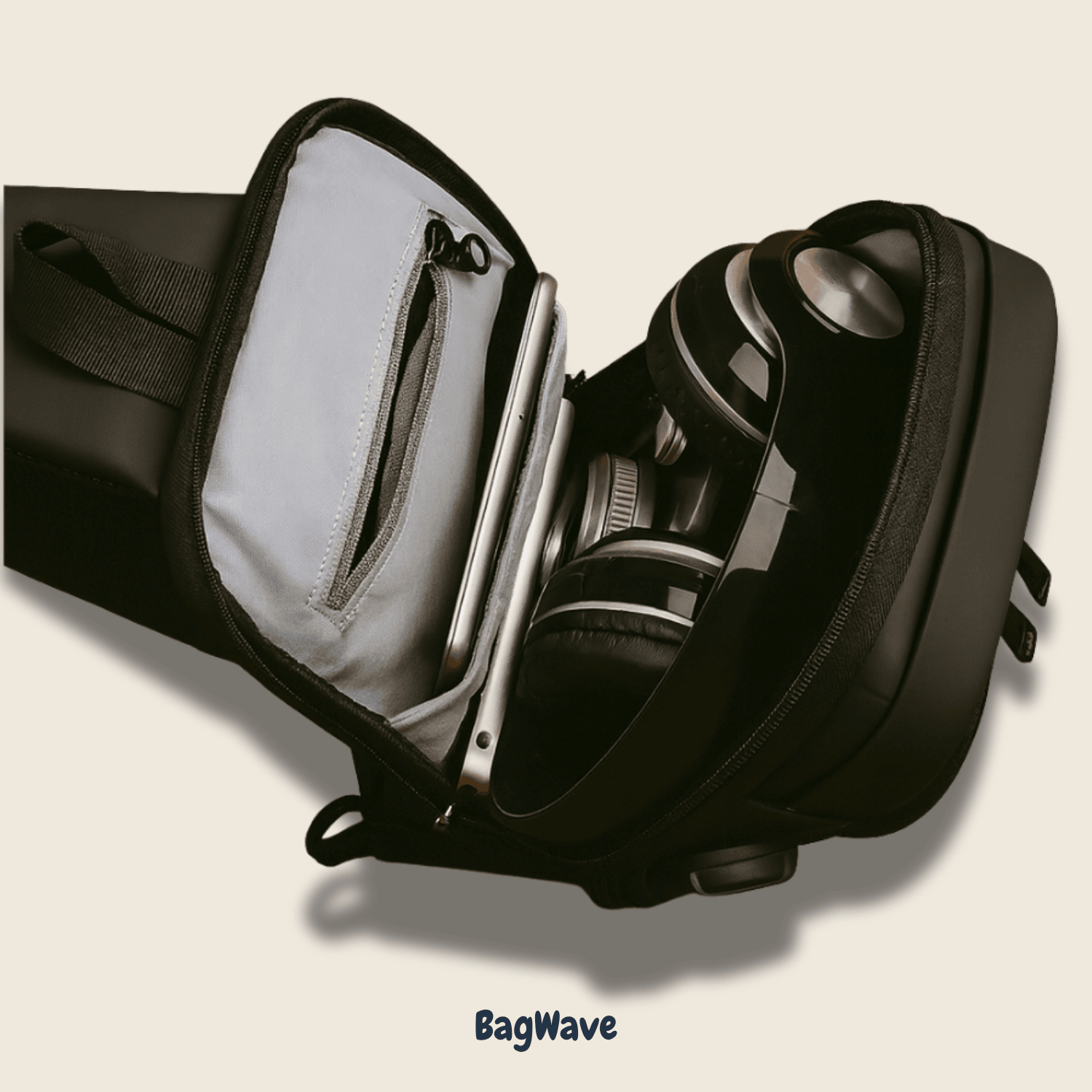 Le bagage est assez spacieux pour un portefeuille, un smartphone, une petite tablette (type iPad mini), un passeport, et plus encore—avec des compartiments bien pensés pour les organiser.